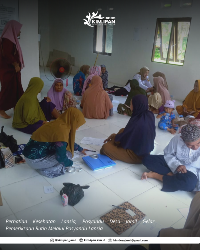 Kegiatan Posyandu Lansia kembali dilaksanakan di Desa Jamil sebagai bentuk perhatian terhadap kesehatan warga lanjut usia. Kegiatan ini difasilitasi oleh kader Posyandu Lansia Desa Jamil dengan pendampingan dari petugas kesehatan Puskesmas Pantai Hambawang.